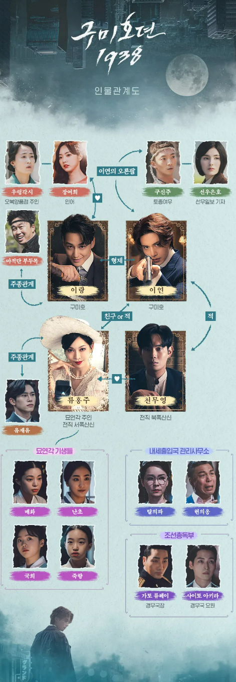 오늘은 tvN 주말드라마 '구미호뎐 1938' 등장인물 및 정보에 대해 알아볼게요.