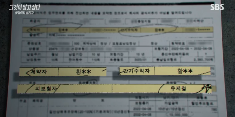 황 씨는 유 씨 말고도 비슷한 보험을 가입을 시킨 사람들이 더 있다는 사실을 알게 된다.