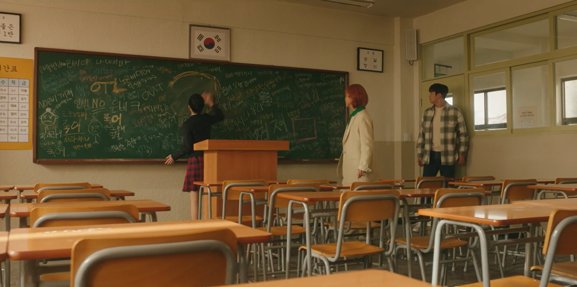 한명이 시작한 학교폭력은 피해자를 노골적으로 드러내기 시작합니다. 울면서 칠판을 지우는 피해자가 가엽네요
