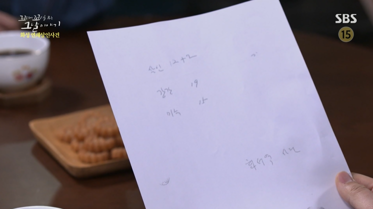 이춘재는 진실을 밝히면 경찰이 곤란해질 수도 있다고 한다. 이춘재는 종이하고 펜을 달라고 한다.