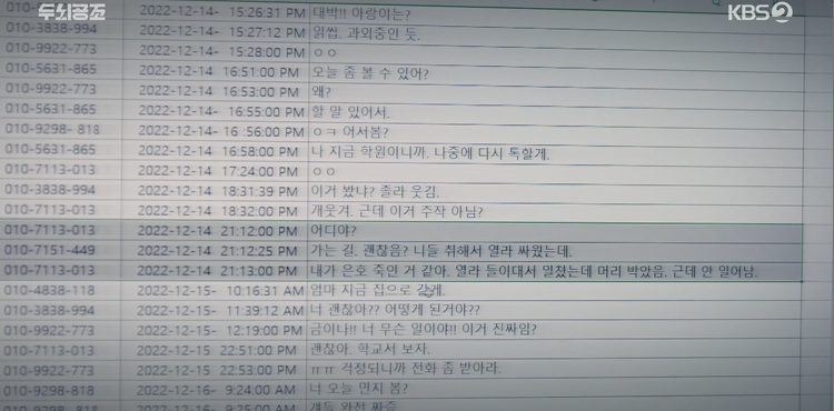 금이나는 네가 그 문자 보낸 거냐고 묻는 질문에 친구에게 협박을 받은 이나는 자신이 보낸 거 같다고 말한다.