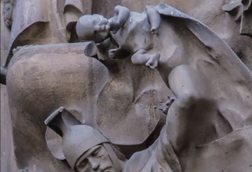 Q. 이것은 성서에서 아기를 죽이는 로마 병사를 묘사한 조각입니다. 가우디는 무엇을 이용해서 조각을 했을까요? 사산된 아기 시신을 조각에 사용