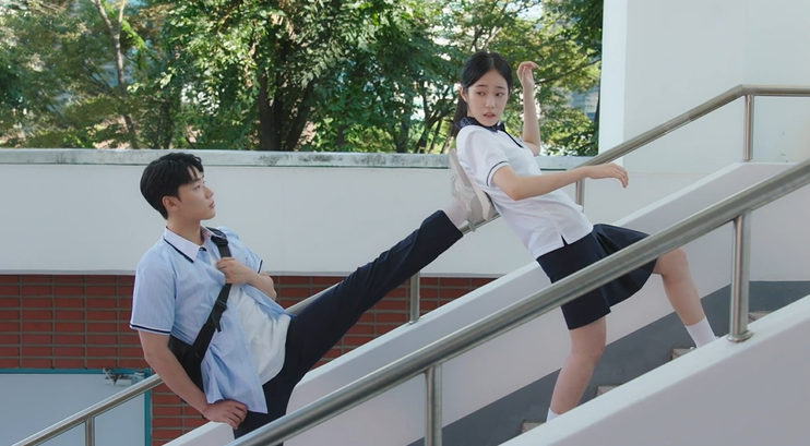 차가 막혀 레벨 테스트 설명회에 늦게 생겨 뛰는 일타강사 최치열은 남행선을 만나 같이 스쿠터를 타고 학원으로 간다.