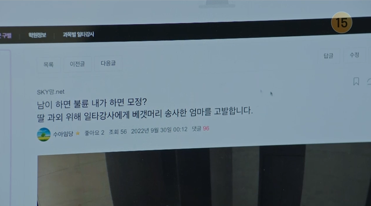방수아 엄마는 엄마들 커뮤니티에 일타강사 최치열과 남행선의 사이를 폭로한다.