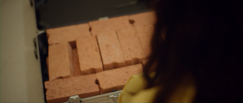 상아는 벽돌이 있는 걸 보고 뒤를 돌아보게 됩니다.