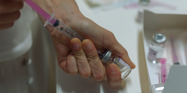 임신을 하고 싶은 이화는 자신의 배에 직접 주사를 놓는다.