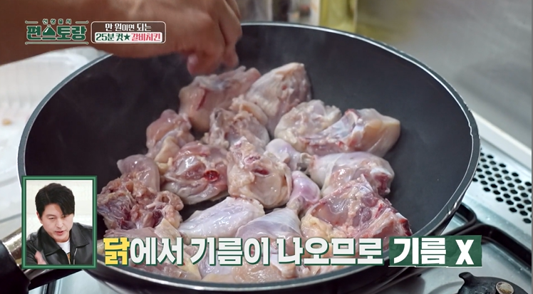 닭에서 기름이 나오므로 기름이 필요 없어요. 강불로 계속 조리해 줍니다.