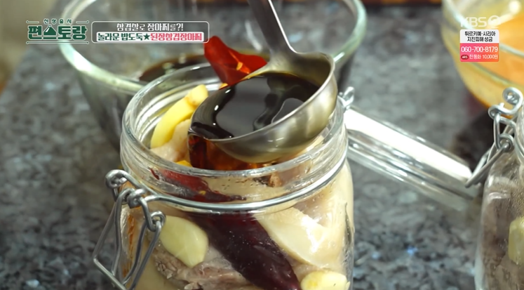 숙성 시간 동안 풍미를 올려줄 생강, 마늘, 건고추를 넣어줍니다.